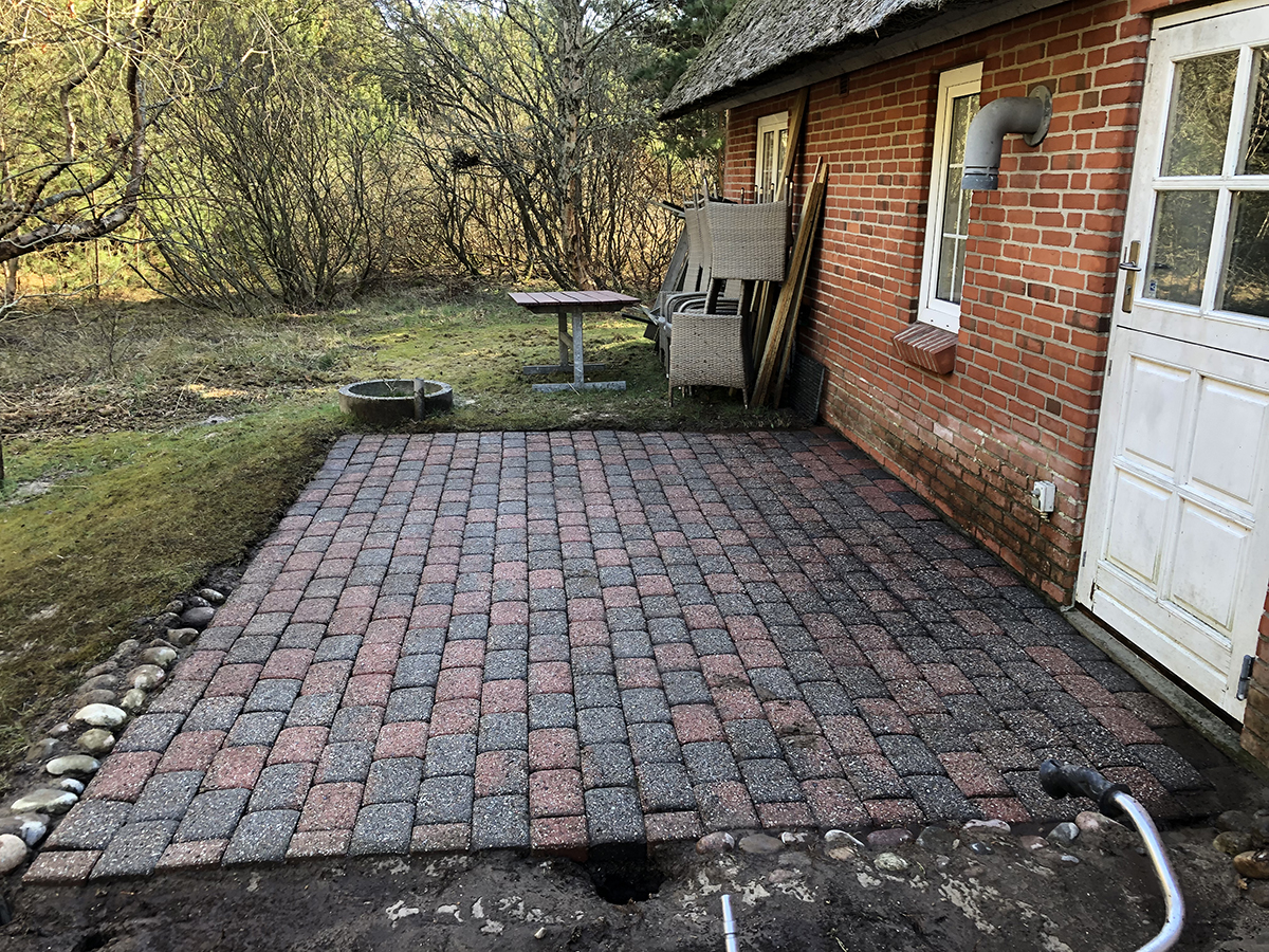 Hos en privat kunde i Fredericia har vi renset 180 m2 holmegaardsten hvor både terrasse,