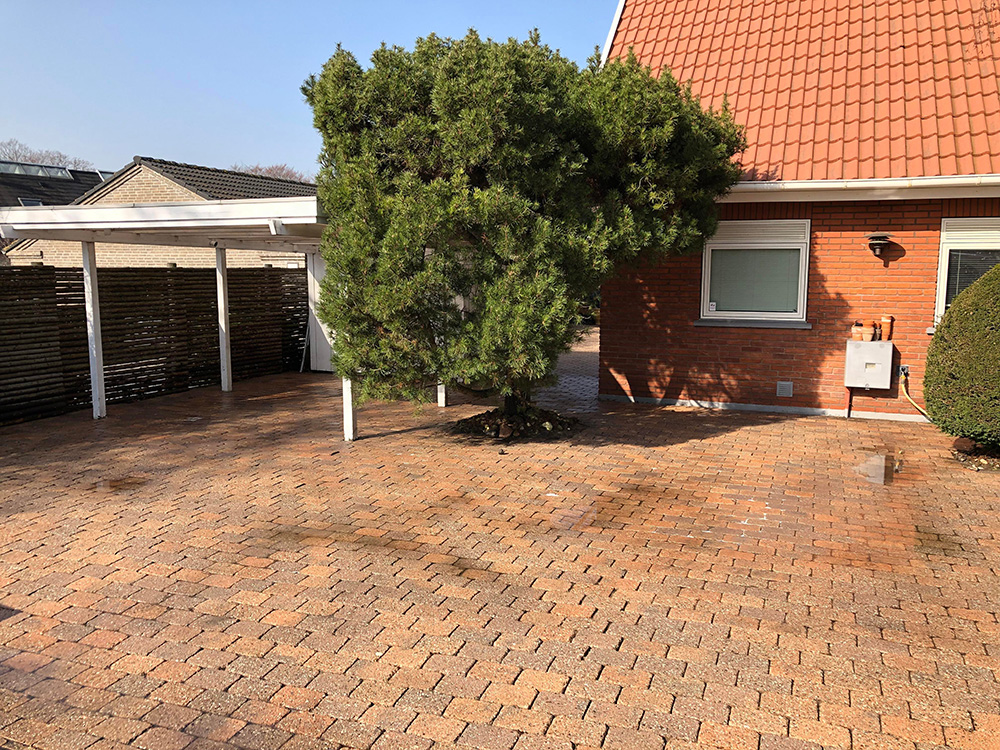 Hos en privat kunde i Hornslet lige nord for Århus udførte vi fliserens og imprægnering
